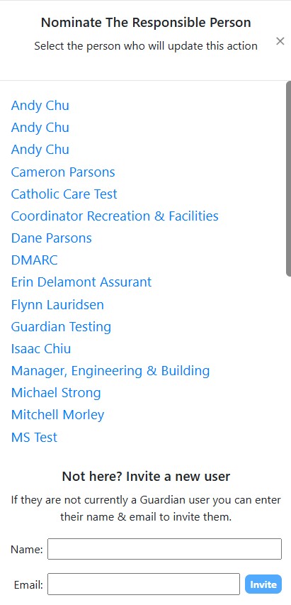 For the "Responsible Person"" field, you can either type a name in the text field or select the magnifying glass icon, to the right, to select from a list of existing users currently in auditdesk.